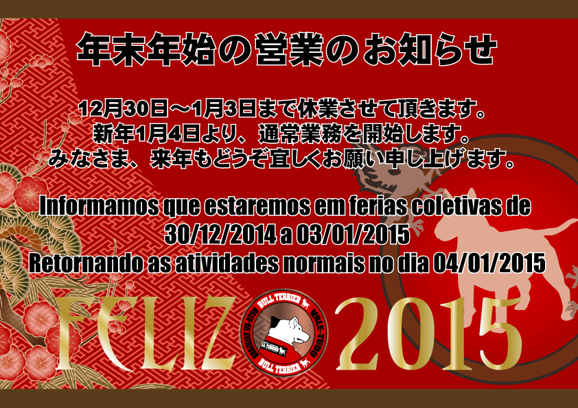 年末年始営業のお知らせ Informamos que Fechamento para ferias