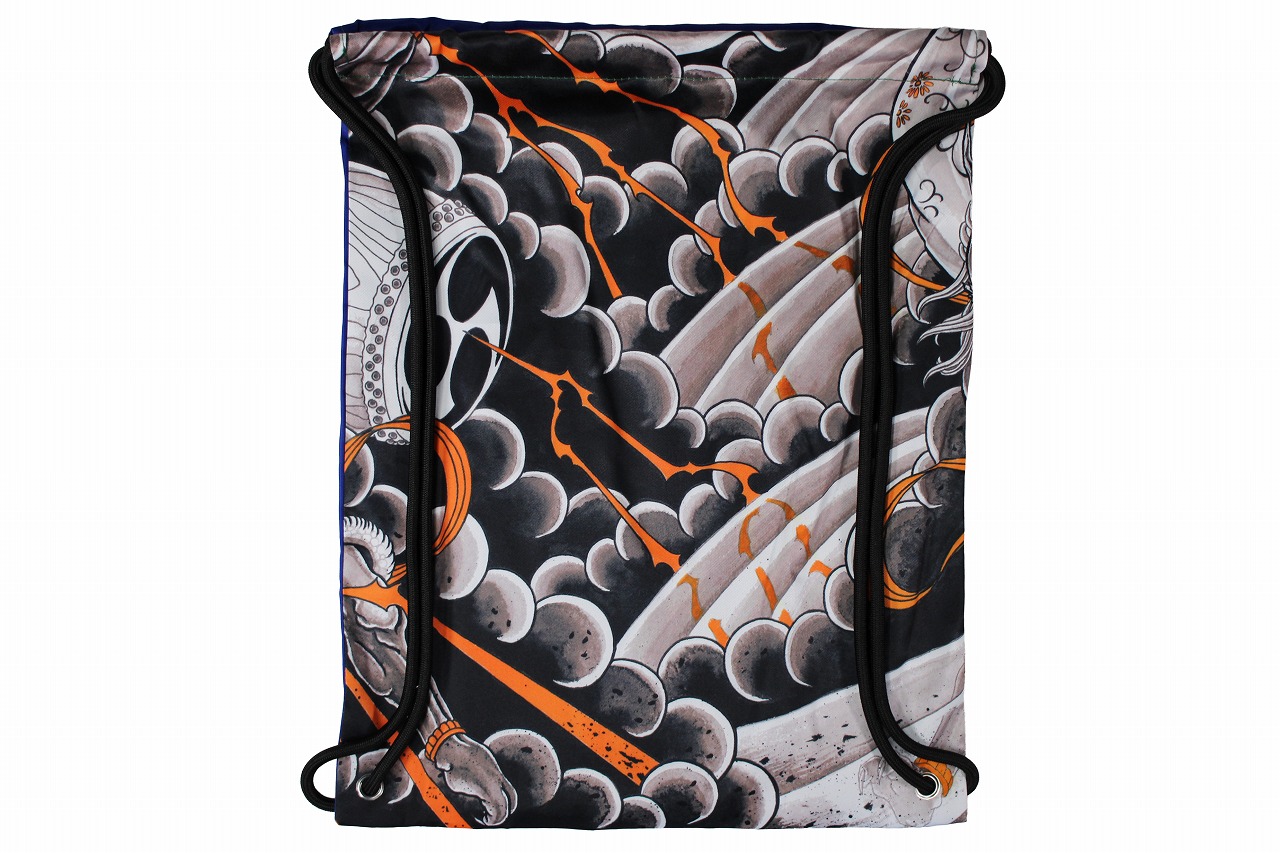 日本の伝統的絵柄図として有名な風をつかさどる神と雷電をつかさどる神の一対『風神雷神』をテーマに本職の彫り師Blade Ink Satoshi氏がデザイン。