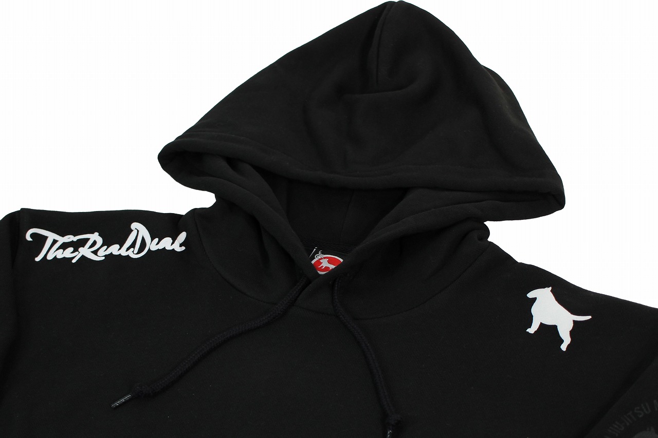 格闘技ブランドブルテリアのモコロゴフードパーカー。